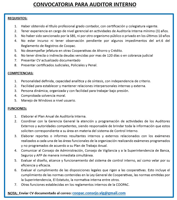 CONVOCATORIAS DE SOCIEDADES DE AUDITORIA EXTERNA 2025